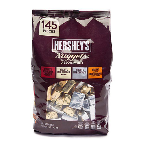 Kẹo Socola Hershey Nuggets Assortment có 4 hương vi mỗi bịch có 145 viên kẹo bao gồm 4 vị, Chocolate đắng, Chocolate Sữa, Chocolate Sữa Hạnh Nhân, Chocolate hạnh nhân toffee ngọt vừa phải (không đường), mùi vị dễ ăn phù hợp với mọi người kể cả người bị tiểu đường. Chocolate Hershey thơm ngon nổi tiếng ở Mỹ mà nếu bạn là một tín đồ của chocolate thì không thể không biết.với hương vị vô cùng quyến rũ, nó không chỉ ngon mà nó còn là món quà ngọt ngào tượng trưng cho tình yêu.