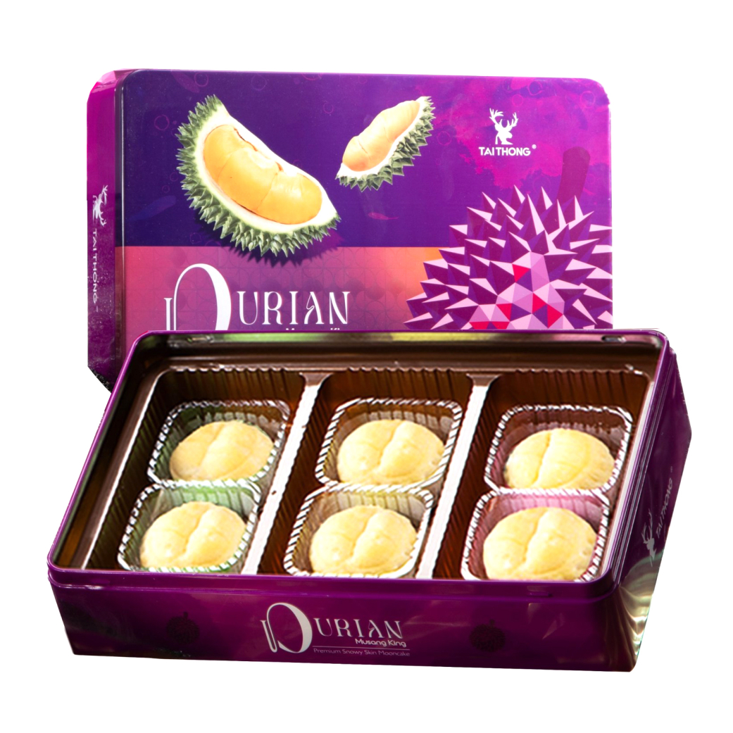Bánh Trung Thu Sầu Riêng Musang King đây là loại bánh vô cùng độc đáo, chinh phục gu ẩm thực của những tín đồ yêu thích sầu riêng chỉ có tại Malaysia. Bên ngoài sở hữu lớp vỏ mochi thuần khiết ngọt ngào nhưng lại kiêu sa và quyến rũ từ lớp nhân được chế biến 100% từ loại sầu riêng thượng hạng Musang King với vị thơm ngon đầy đặn, béo ngậy. Đây là sản phẩm đã góp phần định hình thị trường và tạo dựng vị thế vững chắc cho TAI THONG trong làng ẩm thực Châu Á, với nhiều giải thưởng danh giá và quan trọng nhất là sự đón nhận nồng nhiệt từ khách hàng. Bao bì sản phẩm sang trọng có túi xách hoàng kim giữ nhiệt đi kèm thích hợp làm quà biếu cho dịp Trung thu, Tết đoàn viên sắp tới.