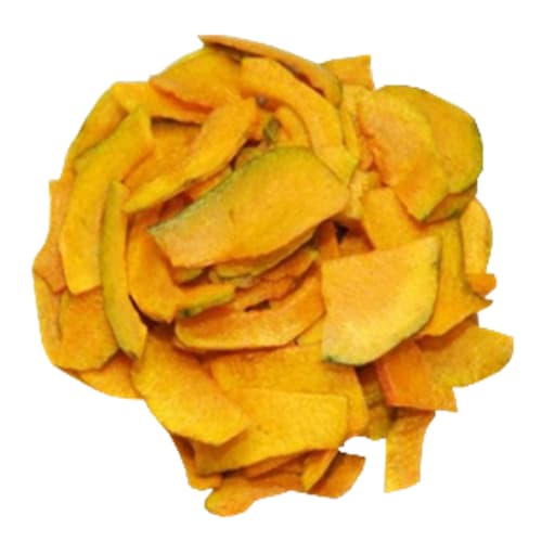 Bí đỏ giòn được làm từ 100% bí đỏ tươi ngon, cắt lát mỏng đều, giữ nguyên màu vàng cam rực rỡ và hương thơm ngọt nhẹ đặc trưng của bí đỏ chín. Sau khi thu hoạch, bí được vệ sinh sạch sẽ, chọn lọc kỹ lưỡng và đưa vào quy trình sấy thăng hoa hiện đại, cho ra sản phẩm giòn rụm với hương vị và màu sắc tự nhiên như lúc còn tươi.