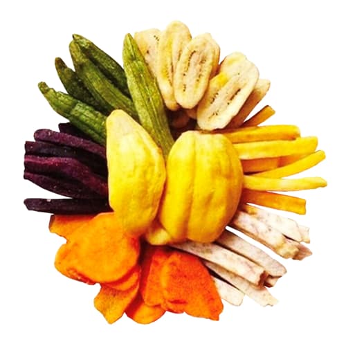 Mỗi miếng đều giữ đúng hương vị nguyên bản – từ vị béo nhẹ và thơm bùi của chuối và mít, vị giòn thanh mát của đậu bắp, đến vị ngọt dịu của cà rốt, bùi béo của khoai môn và khoai tím. Nhờ vào công nghệ cao cấp này, hỗn hợp giòn rụm ngay khi chạm miệng mà không cần dùng đến bất kỳ loại hóa chất hay phụ gia nào. Đây chính là sản phẩm kết hợp giữa nghệ thuật ẩm thực truyền thống và kỹ thuật hiện đại, mang lại trải nghiệm ăn vặt vừa tự nhiên vừa tinh tế.